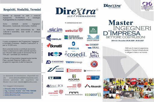 Patrocinati da ANCE (Associazione Nazionale Costruttori Edili) e sostenuti da importanti realtà come SICIM, Bonatti, Webuild, Rizzani De Eccher, Ghella Cimolai, Trevi e tanti altri i programmi Dirextra rappresentano un ponte concreto tra università e mondo del lavoro, offrendo un’esperienza internazionale e un tasso di inserimento del 100% nelle precedenti edizioni.